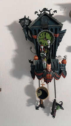 Animated Surprise: A small character pops out from behind the clock door at every hour, just like a classic cuckoo clock — with a spooky twist.